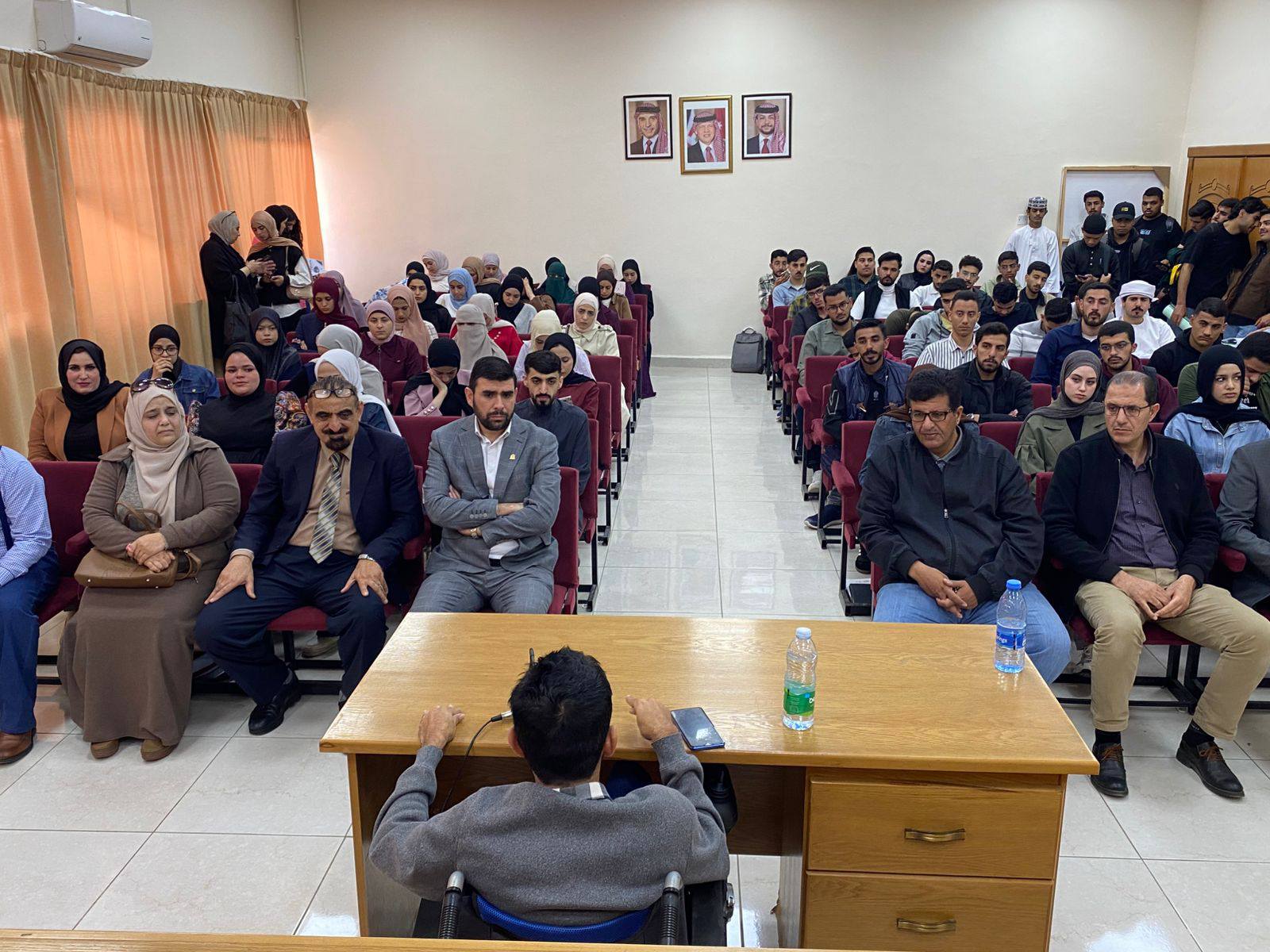 نُظِّمت في كلية الآداب ورشة بعنوان "الإنسان والإعاقة" قدمها الطالب بشار الزغول من ذوي الهمم، وذلك تحت رعاية عميد كلية الآداب – جامعة اليرموك الأستاذ الدكتور خالد هزايمة، وبحضور نائب عميد كلية الاداب للشؤون الاكاديمية الدكتور محمد النصيرات ومساعد العميد للشؤون الطلابية الدكتور غازي العطنة، ورئيس قسم الدراسات السياسية والدولية الدكتور عارف بني حمد، إضافة إلى عدد من أعضاء الهيئة التدريسية والطلبة.