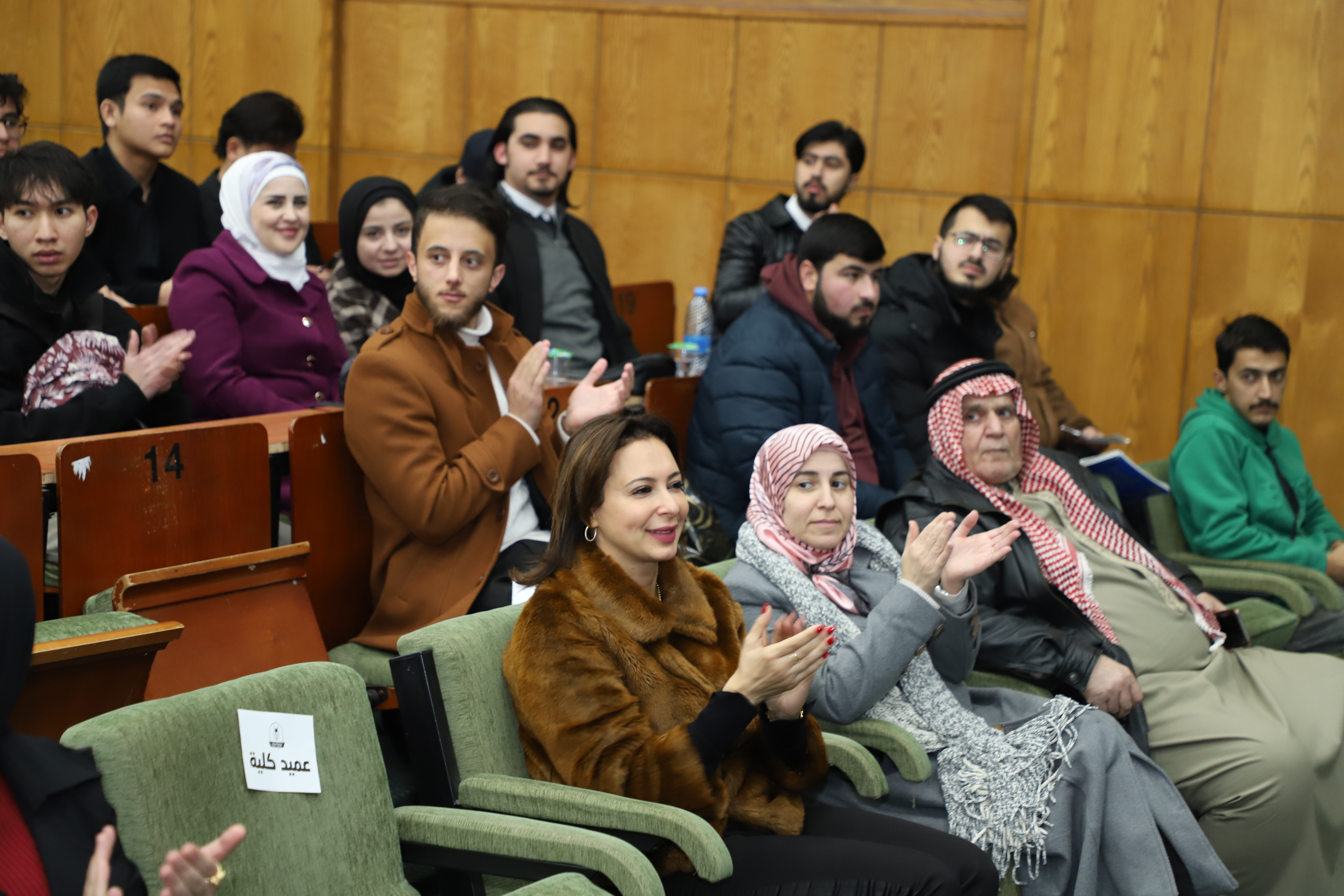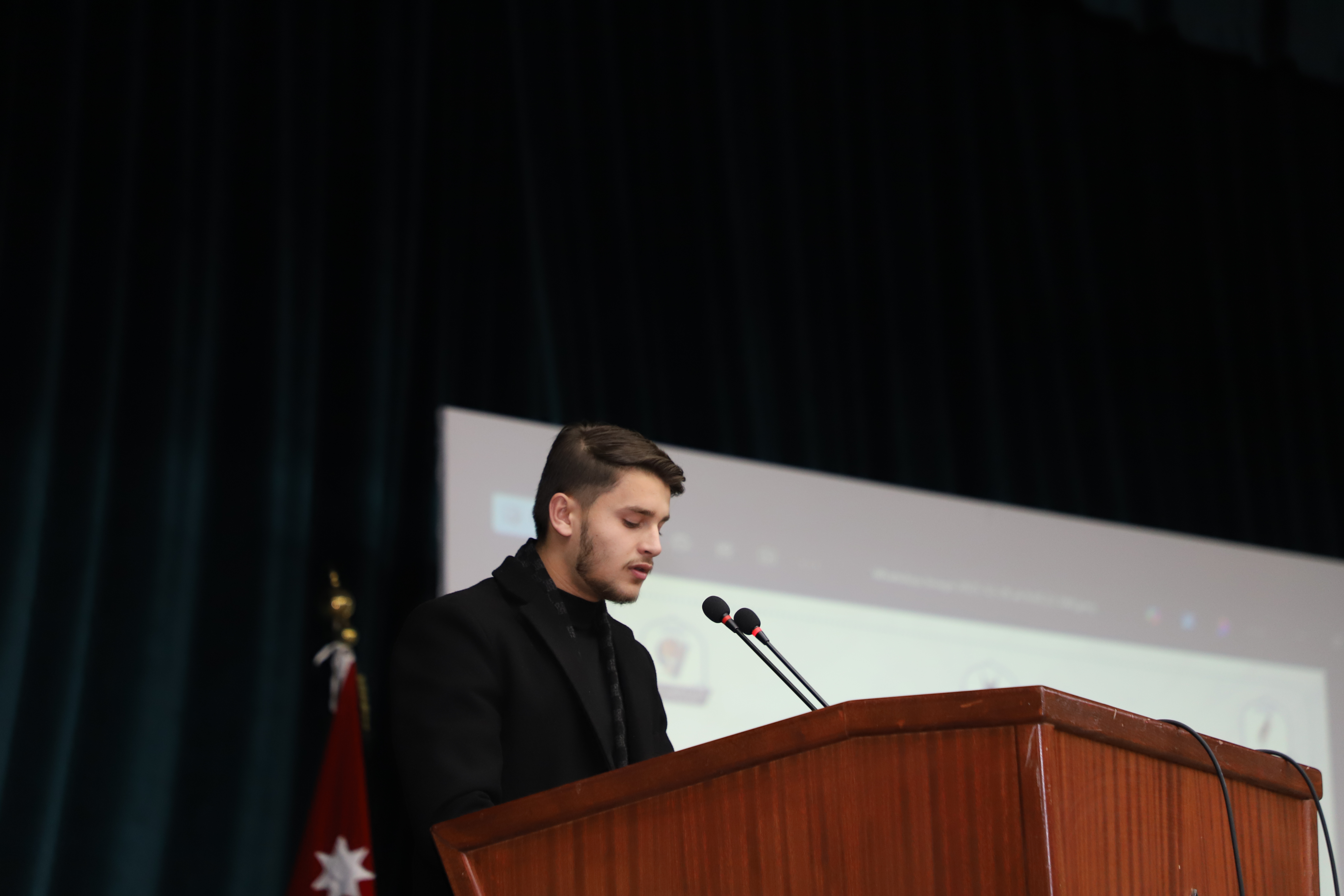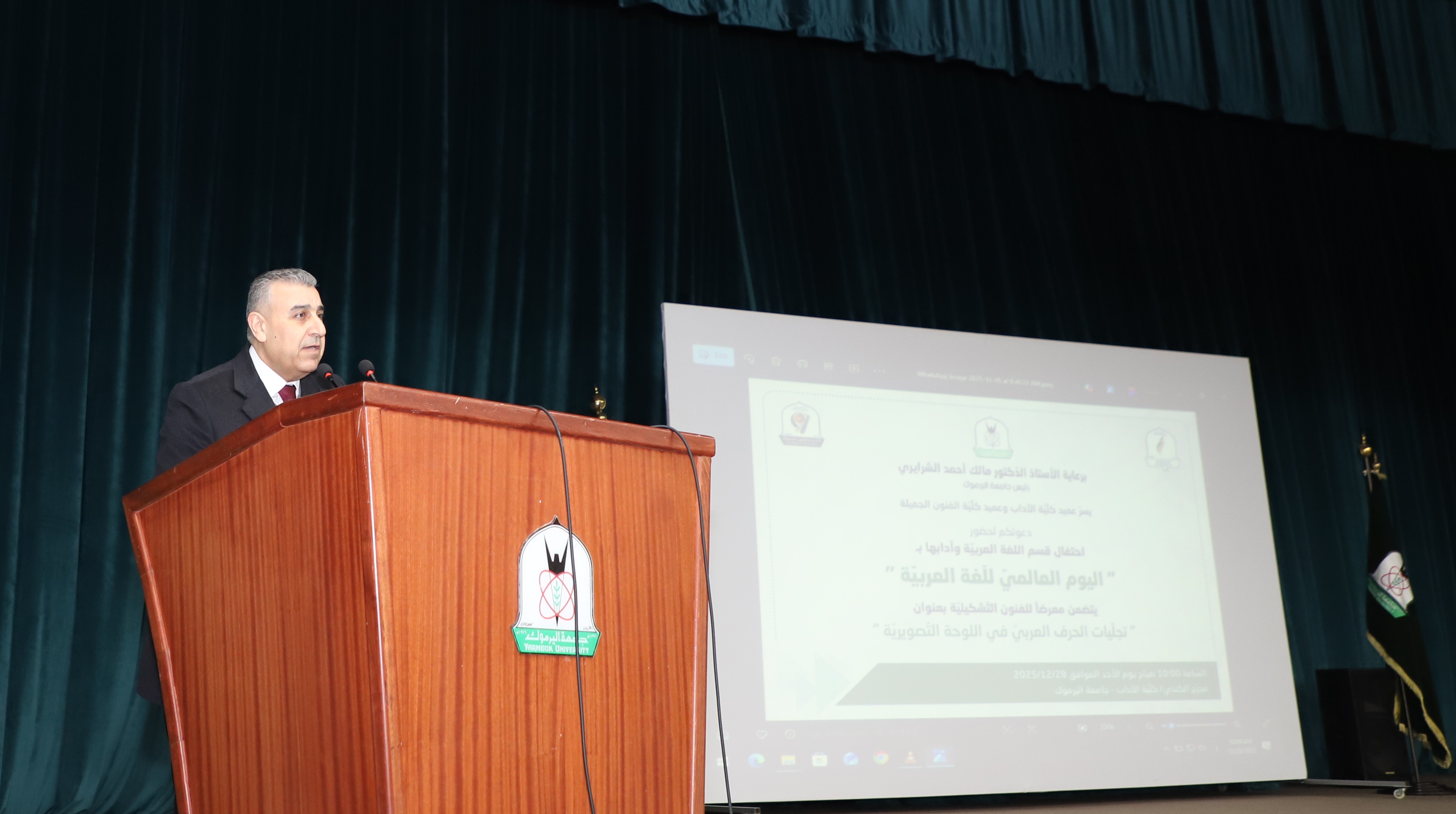 بدوره، ألقى عميد كلية الآداب الأستاذ الدكتور خالد الهزايمة، كلمة أكد أن الاحتفاء باللغة العربية يأتي احتفاء بروح الأمة، ولسان الحضارة، وهو احتفال غير شكلي بل هو وفاء لمعانيها وانتصارا لقيمها، وتجديدا للعهد بحمل رسالتها، مشددا على أن اللغة العربية كانت ومازالت وستبقى لغة علم وفكر وفلسفة قادرة على التوليد والتجديد.